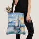 Vattenfärgssegelbåt på Sjö vid solnedgång Tygkasse