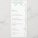 Den här möhippa- eller babyduschmenyn har en blekens grönt och ett tvinnat band på gräns. Där "menyn" i ord är kan du ha gästen namn i stället, så att menykorten också kan dubbla som platskort. På motsatt sida finns en grönt och vit rand-utskrift (om du vill kan du ändra ljust grönt till vilken annan färg som helst eller ta bort ränderna helt och hållet och ha en enda färg-bakgrund.
