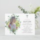 Trendig vild woodland forest eucalyptus greenery Baptism eller Christening-inbjudningskort designad för att snabbt och enkelt kunna anpassas till dina specifika behov. Ett foto av porträtt rekommenderas.