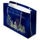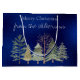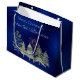 Den här enkla julklappen i julklapp har en mysigt helgdag. En bild av en vinterskog placeras över grund, med olika träd sprinklade med snö. En provfamilj namn och jul hälsning trycks högst upp. Du kan anpassa presentsäcken så att den innehåller ditt eget eget namn eller egen text. Bakgrunden på framsidan har ett mörk blått texturerat mönster, som liknar en vinternatt.