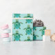 Utformningen av kantiga presenter har små blåa sköldpaddor mönster på akvatisk bakgrund