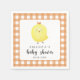 "En liten kyckling är på väg." Fira med den här tecknaden, kyckling, temat babydusch party! Söt chick med baby ansikte. Orangens bur.