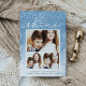 semesterhälsningar med chicen Hanukkah-fotokort med tre av dina favoritfoton (1 liggande, 2 kvadratmeter) som arrangeras i en rektangulär kollagelayout på en blek blå vattenfärg tvättar bakgrunden accentuerad med fallande snö. "Shine" visas överst i elegantens handskrivna skripttypografi. Anpassa till anpassningsbarna Hanukkah hälsning, namn och året längs grund. Kort som går tillbaka till rand mönster i matchande pastellblått och vitt.