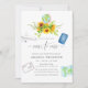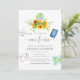 Trendig, handmålad solrosfärgsfärgsfärgsfärgen färdas temat inbjudningskort för möhippan med gröntens vattenfärg tvättar bakgrunden.