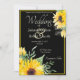 Vattenfärgssolrosor på svart bröllopsinbjudan inbjudningar