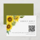 Lägg till en modern beröring till bröllop med den här elegant solrosblomman med med en praktisk QR-OSA kort så att gästerna kan svara på online. Ljusa, glada solblommor blommar över hörnet, parade med klassisk typografi och en ren layout. Perfekt för land, bondgård eller sommar-bröllop, gör detta kort till enkla och snyggt. Gästerna kan söka igenom QR-koden eller skicka sitt svar via e-post - ingen porto krävs! Anpassa texten så att den passar in på datum- och kontaktinformationen.