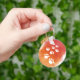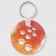 Vattenfärgen hund tass spårar i vitt, rött och orange med färgstänk som appliceras på bilden. Anpassningsbarnas nyckelkedjor med ursprunglig design. Gift-idé för hundälskare.