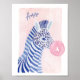 Vattenfärgsstylta zebra-djur som blåser tuggummibu poster