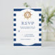 Ratten av marint rand och vattenfärg skapar ett klassiskt nautiskt utseende som är perfekt för elegant nautiskt bröllop eller vid strandbröllop. Modern och elegant teckensnittskombination för elegant. Djupblå rand på baksidan.