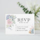 Svarskort från elegant bröllop med en klassisk vit bakgrund, en vattenfärgad visning av pastellblommor och subckulenter och en snyggt osa-mall som är enkel att anpassa. På motsatt sida finns en pastel grönt färg, men detta kan ändras. Du kan också hitta en gömt över hela blommönstret när du anpassar den här designen ytterligare.