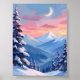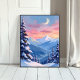 Affisch med vattenfärgstavla av bergsmåne vinter