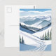Vattenfärgstavla av skidbacke vykort