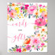 Vattenfärgstecken för fetstil i blommigt möhippa poster