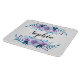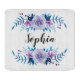 Glasskärbord med romantisk blått och lila vattenfärgsdekoration för blommigt och anpassade namn eller monogram.