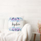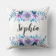 Dekorativ kudde med romantisk blått och lila vattenfärgsutandningsdesign och anpassade namn eller monogram.