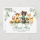 Vattenskärtskläder Djuren Babykläder Tack vykort. Baby djur omfattar björn med Grönt Bow, Hjort, Moose, Raccoon, Bunny Rabbit, Fox och Uggla på eukalyptus löv och skogsmörjmedel. Grönt Script.
