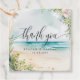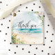 Vattenfärgstrand sommarbröllop tack presentkort. Denna design har en vacker sommarstrand scen i vattenfärg. Havsvågor, sand och blommor ingår alla i denna tropiska design.