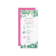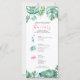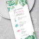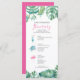 Välkomna er gäst i brudens sida med den tropiska bakterien stil vid kusten, helg, på resväg- eller bröllopsdagar vid stranden. Tetlängdfärgen illustrerar bröllopsprogrammet med min ursprungliga rosa flamingo, cocktail, havssköldpadda och handflatan löv-monstera i grönt- och turkosblått. Sommarinformationen är angiven i ett skript med elegantens rosa och sans serif-typografi. Kortet återgår till en solid komplementär rosa färg. Perfekten för kust- och tropiskt grönt bröllop, bachelorette och brudens sida helg kommer undan. Om du vill se mer inspiration till badbröllop kan du besöka min butik på www.zazzle.com/dotellabelle