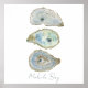 3 Ostron, en ursprunglig vattenfärgsdesign som inspirerats av konstnärernas hemstad vid Alabama Bukt Kusten.