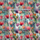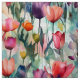 Vackra vattenfärgsmålning av multipla färg-tulpaner i fullt-blomning.