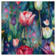 Snittblommor varar bara några dagar, men en vacker vattenfärgmålning av färgstarka tulpaner varar mycket längre. Denna fält av multipla färg-tulpaner i fullt-blomman har en mörk blått bakgrund.