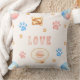 Den här lekande vattenfärgen stil-dekorativ kudde har ord "KÄRLEK" omgiven av tass avtryck, benformade treter och känsliga segelceller. Mjuka, handmålade struktur och pastelltoner skapar en charmerande blandning av bijabönor och sällskapsälskande värme. Perfekt för djur älskare, kustteman och alla som tar hand om håriget är lika mycket vänner som havet.