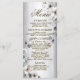 Vattenfärgsvit blomma Golden Ram Silver Middag Menu. Unik, vacker utformning av snyggten. Lätt att vara personlig. Teckensnittet stil, storlekt och färg kan ändras. Matchande objekt är tillgängliga.