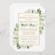 Modern Elegant Watercolor Eucalyptus Greenery White Flowers Guld Ram Inbjudningskort för möhippan