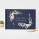 Vattenfärgsvit Rosa Blommor Grönt Ram Bröllop Gästböcker