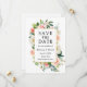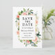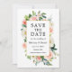 Elegant Watercolor Rosa Blommigt Bröllop Förlovning Announcement Save Datumkortet omfattar vackra rosa ros, vita blommor och botaniskt grönt. Guld Ram.