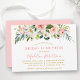 Modern Elegant Watercolor Rosa Blommigt Möhippa Luncheon-inbjudningskort omfattar rosa ros, vita blommor och botaniskt grönt löv. Trendig Calligraphy Script. Guld