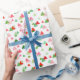 Den här moderna helgdagarna har en vattenfärgsfärg grönt och den röda triangeln konfetti mönster mot en vit bakgrund.