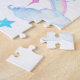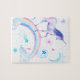 Vattenfärgunicorn över regnbågen, stjärnor, månen, regnbågen i lilor och blått, vid vattenfärgkonstnären Cheng Jing.