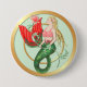 Fantastisk design med blonde sjöjungfru som håller en söt vattenfri. Ornate guld art deco stil bakgrund.