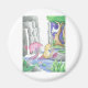 Sötnos med sjöjungfru katt med rosa och lila svan i en utdragen vatten-trädgård med vattenfall och groda.