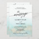 Vattenstranden och guld i en giftermål inbjudan är perfekt för ett tropiskt destinationsbröllop. Den enkla och moderna designen har en fantastisk turkos, teal- och ljusblå vattenfärg med en mjuk guld-gnistra som påminner om sand och hav. Den är parad med en fantastisk elegant-kalligrafi. Spara papper genom att inkludera uppgifterna på baksidan av bröllopsinbjudan i stället för på ett separat djurutrymmeskort. Ta även med OSA-informationen om din gäst svarar elektroniskt (valfritt). Om du vill ha den här designen utan detaljer på baksidan kan du läsa följande lista: https://www.zazzle.com/256611812694402797 Obs! Den här designen har ingen verklig guld glitter. Det är en högkvalitativ grafik som framstår som en småaktig gnistra i guld.