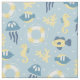 Vattendesign för sjöfart i färger av blått, guld och vitt. Cute fishes, seahorse, geléfisk, Boat Ring Life Buoy Preserver / livesaver och sjögräs. Kartläggning av hav/strandtema.