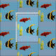 Med en fisk mönster av fiskar som simmar i havet mellan sjögräs. Idealisk för ett område i havet, fisk och älskare och sportfiskare, är denna vattendesign från min ursprungliga glasmålning. ©Annabel Potter