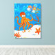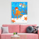 En grafisk vattenbild av en söt bläckfisk och en rolig fisk på en omsluten kanvas. ©2014 charmainepaulson