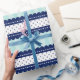Vattenmarinblått Rand och Polka dots Mönster Presentpapper