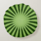 Framsidan av kudden är en saftig vattenmelon halv med skorpa, frön och frön hål. På baksidan visas det strimlade huden som bleknar till en fält-punkt i bleken.