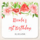 Denna vackra och eleganta underlägg har vattenfärg vattenmelon, granatäpple, jordgubbar, körsbär och lövverk. Texten kombinerar handskriven script och serif-teckensnitt för en stilren och modern look. Detta är perfekt för en rustic födelsedag under våren eller sommaren.