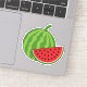 En illustration av en hel vattenmelon och en del av den. Vattenmelon är en avlång eller sfärisk frukt med en strimlad grönt eller mörk grönt yttre skorpa och ett sött, saftigt rödaktigt eller gulaktigt fruktkött från färg. Frukten kan vara utan frö eller frö. Vattenmelon är en av de mest populära frukterna för sommartid. Du kan äta frukten färsk och kall eller bereda en smakfull vattenmelonskaka. Vattenmelonhydrater och ger bra näringsämnen till kroppen. Om man redan ser många vattenmeloner på marknaden är det dags att säga "Hej, sommar!".