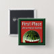 En bild som illustrerar en lustig vattenmelon i texten First Ställe Watermelon Eating på en utmärkningsknapp. ©2013charmainepaulson