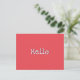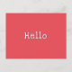 I en tilltalande vattenmelonröd färg är detta postkort stilrent och enkelt. Standardtexten på framsidan är ett enkelt "Hello", men du kan anpassa kortet med dina egna ord om du föredrar det. Baksidan av kortet är tom för ditt eget meddelande.