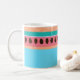 Här är en underbar sommartid mugg i levande tropiska färg! Den har en fet korall färgad rand med vattenmelonfrön, en tealaccent och en peachy texturerad rand-accent som gör att den ljusblå bakgrunden blåser! Lägg till ditt namn, din logotyp, dina händelser eller något annat du vill ha.