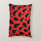 En livfull röd bakgrund är täckt med blanka svarta droppar i varierande storlek, som liknar tårar och små sfärer, vilket skapar en slående visuell kontrast mellan de två färgerna.