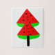 Planlägg i rik röd och grön figur av ett träd med delar av design för frukt en vattenmelon ny och ungdomlig,