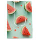 Vattenmelonsegment på en mjuk myntbakgrund med grönt.