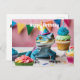 Vattenövervakningsödla som bär födelsedags hatt vykort